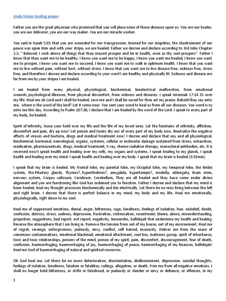 Cyndy Trimm Healing Prayer PDF Cancer Headache