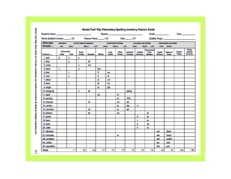 Wordselementary Spelling Inventory Words Their Way - Words their way elementary spelling inventory feature guide student’s name _______________________________ teacher. If a student spells more than. There are three spelling inventories that words their way recommends (primary, elementary, and upper elementary spelling inventories.)each of.
