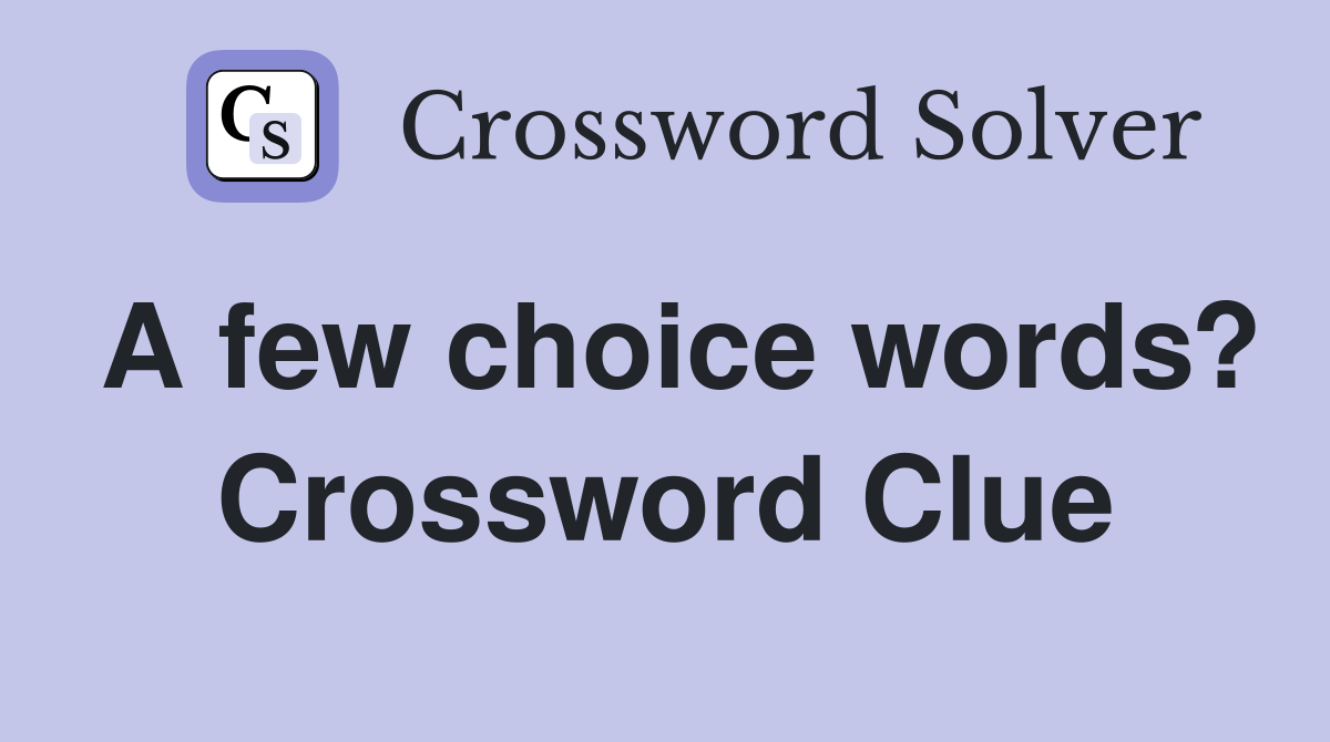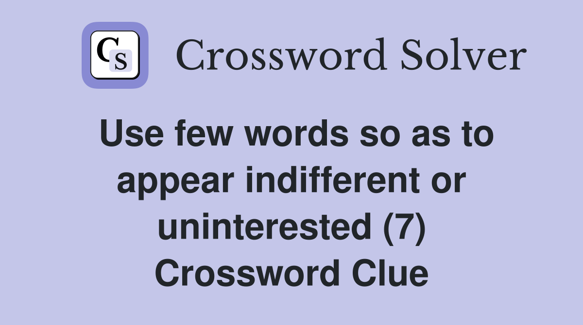 Here is the answer for the crossword clue ___of few words. Please find below the ___ of few words crossword clue answer and solution which is part of daily. The crossword solver found 30 answers to of few words (7), 7 letters crossword clue. The most common solutions for the crossword clue of few words are terse with 5 letters,..
