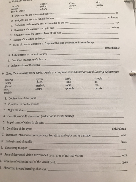 When Considering Your Question About Which Word Part Means Eye Or Vision,.