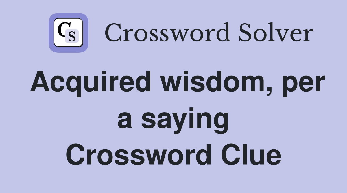Acquired wisdom, per a saying Crossword Clue Answers Crossword Solver