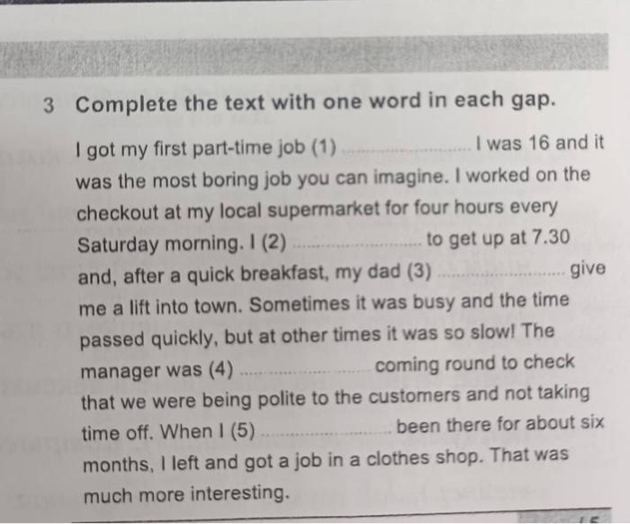 Write One Word In Each Gap Estudiar