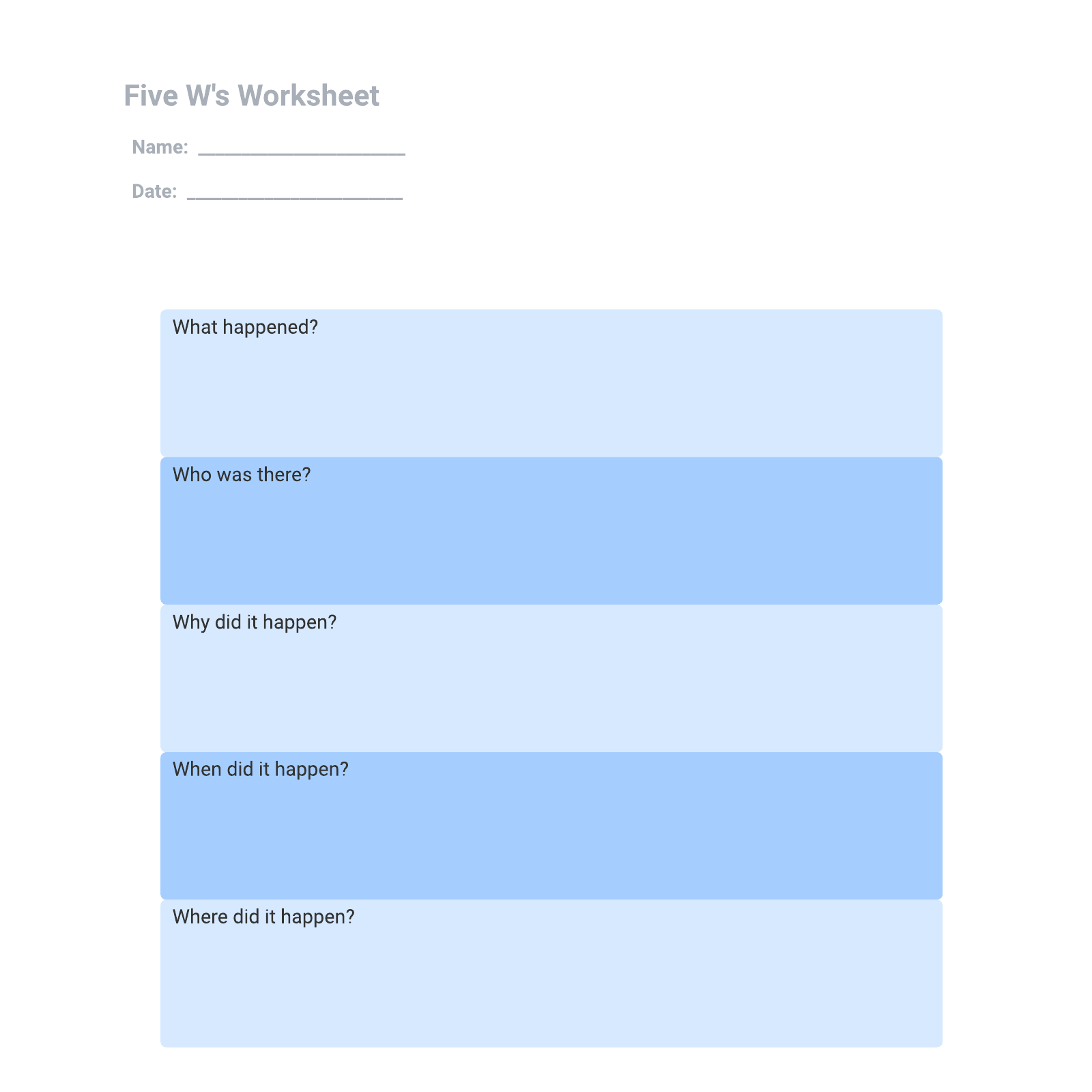 Creating questions that start with the 5 w's, such as: Question marks worksheet 5 w's about this worksheet: Who, what, when, where, and why will help.