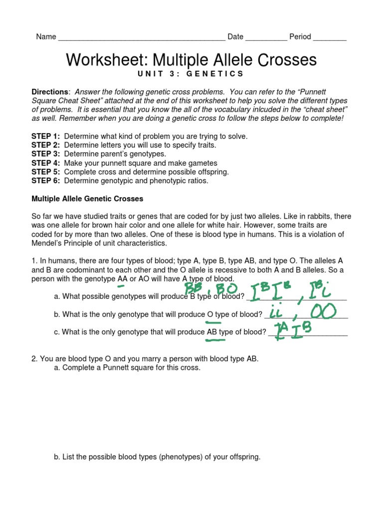Worksheet Multiple Allele Crosses Answers « Fun Math Worksheets