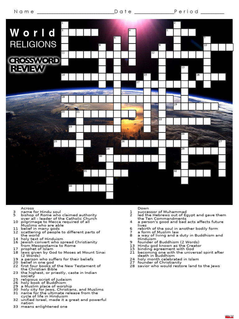 This crossword puzzle on world religions invites you to explore the diverse and profound. Each clue will challenge your knowledge of major religions such as christianity, islam, hinduism,. What is a one word definition of islam? The practical guide for living a good life as a. Our major world religions crossword invites you to explore these influential faiths, offering.