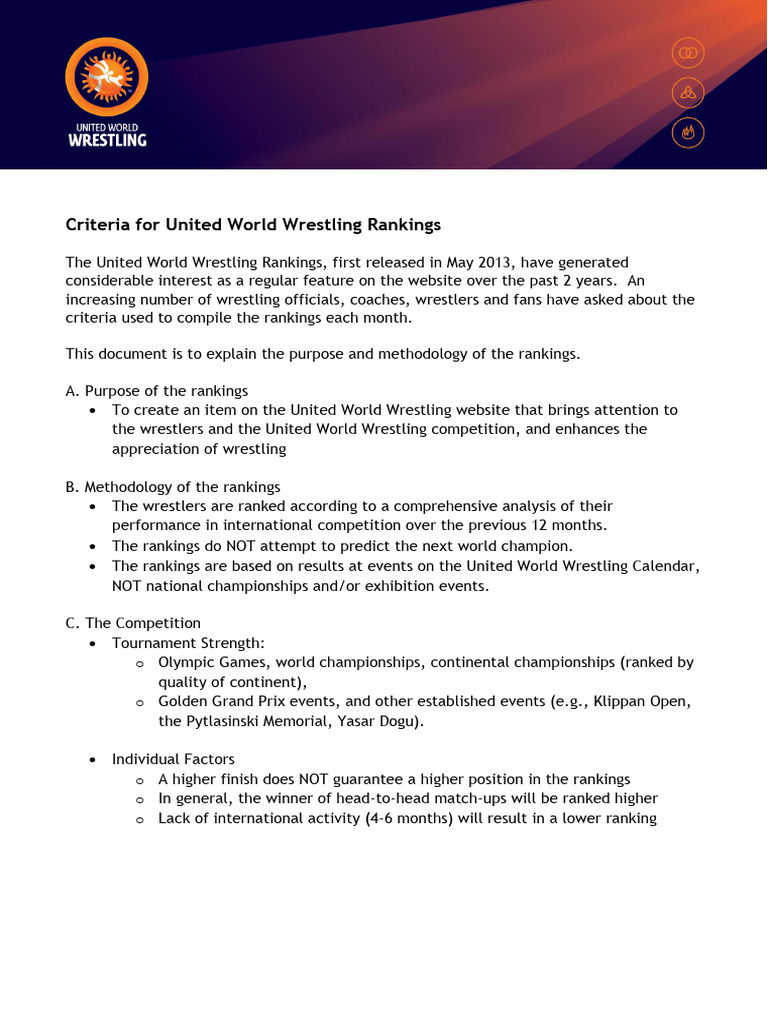 World Wrestling Rankings Freestyle - Another new entry to the rankings is efgan khasalov who recently defeated makhir.