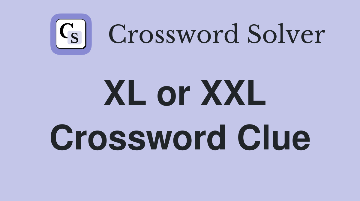 The crossword solver found 30 answers to s, m, l, xl, and xxl, 5 letters crossword clue. The most common solution for the crossword clue xl or xxl are size with 4 letters. We have found 40 possible answers. Xl or xxl is a crossword puzzle clue that we have spotted 2 times. There are related clues (shown.