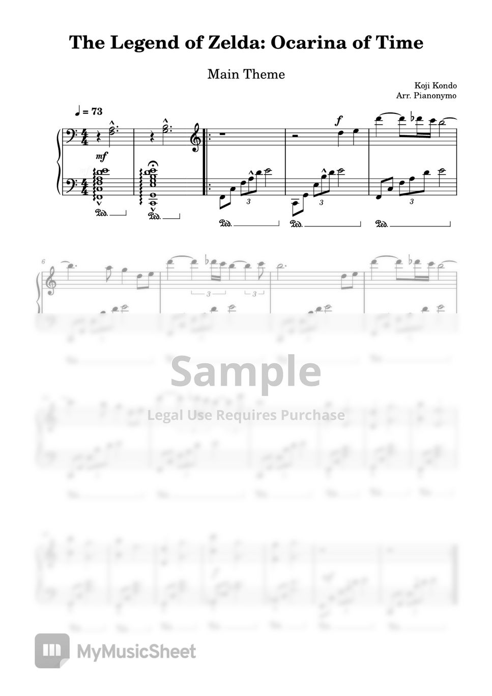 The Legend of Zelda Ocarina of Time Main Theme Sheets by Pianonymo
